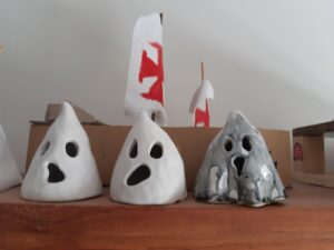 werken met drukmallen of opbouwen met kleiplaten. We glazuren ook allemaal onze eigen keramiekwerken.