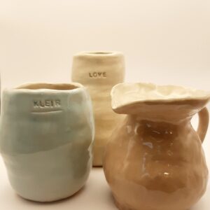 De keramische werkjes van de kinderen zal ik na de workshop allemaal 2 keer bakken en glazuren zodat alles ook echt gebruikt kan worden (vaatwasserbestendig)